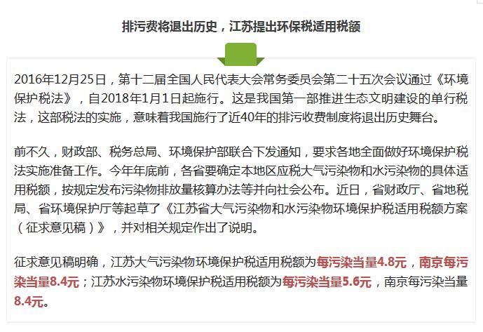 江苏公开征求意见,环保税税额怎么定?看这里!